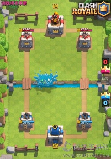 然后就会看到河水溅上岸边,可以卷走河边的小型兵种(比如骷髅、哥布林)或者正在跃河的野猪骑士。注意,对于大型单位(比如巨人)和空中单位(比如飞龙宝宝)无效。