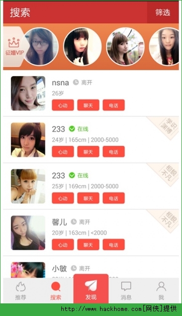 交友软件,使用这款app的单身男女可互换手机号码,聊天真实可靠,平台交友成功率高达67%。同时,通过
