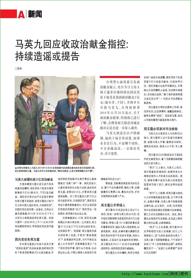 马英九回应政治献金指控:持续造谣或提告