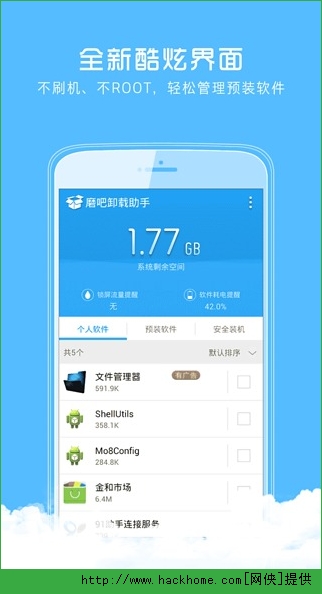 磨吧卸载助手安卓手机版app是一款手机软件游戏卸载安装应用,全新的炫酷界面,一键卸载,3秒预装,最简洁、最高效的预装软件卸载工具,为千万用户提供贴心服务,