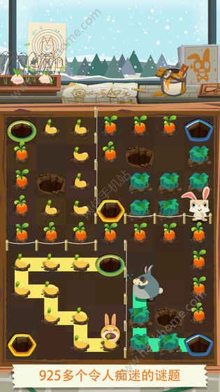 你需要通过点击屏幕上农田上的萝卜,每个萝卜都只能点击一次,也就是说,你划的兔子吃萝卜的路线只有一个,最后逃进兔子洞。