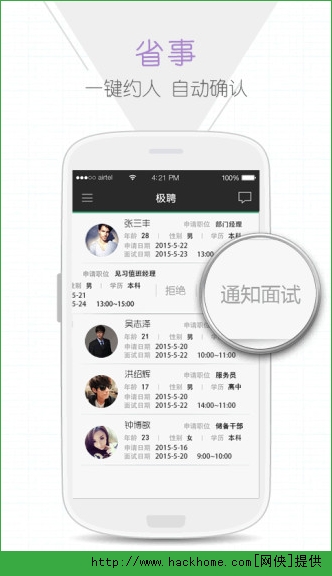 1.省事:极聘新颖的机制流程设计,让您在整个招聘流程只需点几下按钮。不用再打