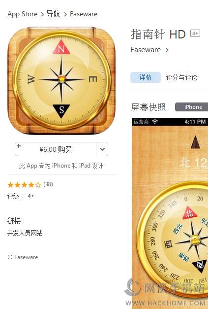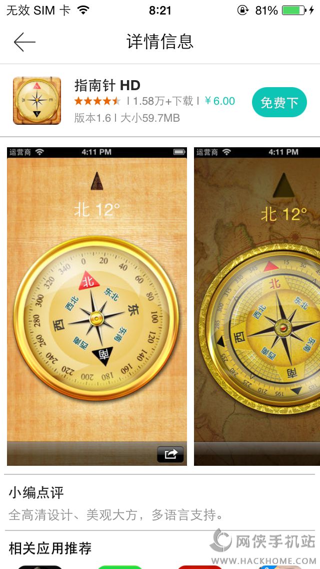 提醒:指南针HD只能使用手机安装,无法通过电脑下载;