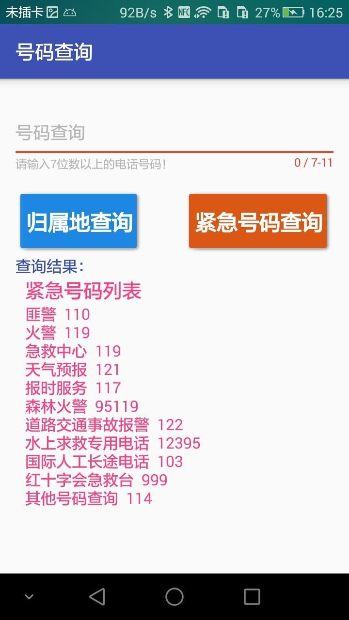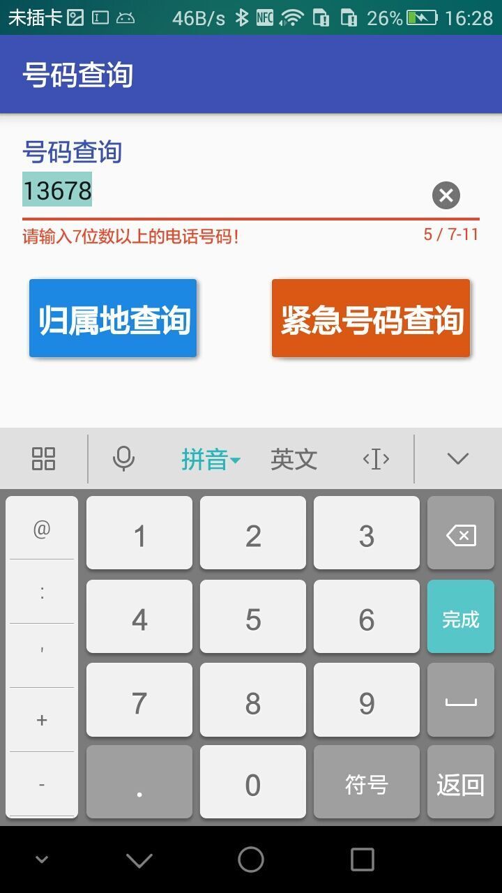 通过电话查询按钮,在输入需要查询电话号码第7位时,点击查询自动识别该号码的运营商及号码归属地;