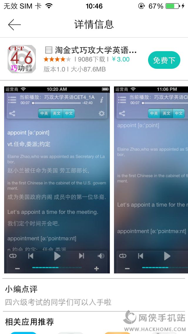 英语词汇46级官网ios已付费免费版app是一款英语46级复习软件,丰富的词汇和例句,可以根据