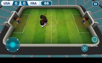 卡通风格的足球模拟游戏,球员的国籍,外貌和球衣,你可以根据自己的爱好自由定义,比赛在一个Q版的足球场地上进行,控制你的球员开展进攻吧。