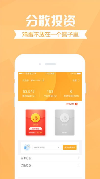 4、理财任你选:上百家平台任你选择,鸡蛋别总放在同一个篮子里。