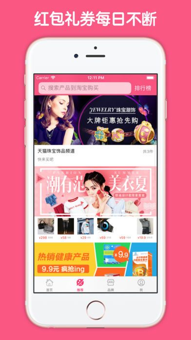 5、购物省钱有方法:每天精选超值特卖优惠券,券后省钱高达90%。每天10点上新上万优惠券,将优惠进行到底。百万商品每天精选好货定时发布,优惠幅度超大,节省高达80%,专享折扣,领到你手软!