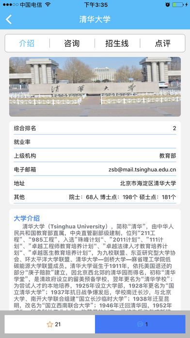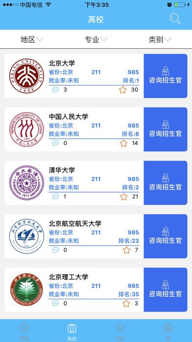 熊猫教育app是一款非常实用,专为广大备战高考的莘莘学子打造的线上志愿填报参考软件,本应用收录了海量全国高校的专业信息,采集了大数据,为学生提供最合理的志愿填报方案!让你去到理想的学府!