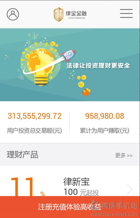 1.律金金融是律金金融信息服务公司打造的互联网金融平台,以律师全程参与为保障,为投资者提供稳定、良好、高效的理财投资服务。