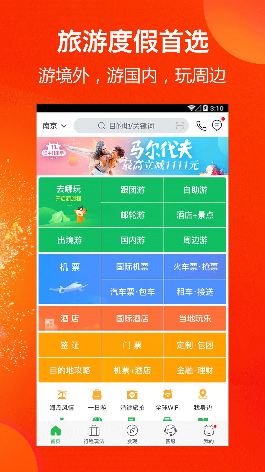机票、景点门票、当地玩乐、牛人专线、购物退税、牛人定制、签证办理、境外