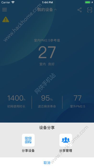 提醒用户pm2.5状况、滤材使用时间及更换、并通过