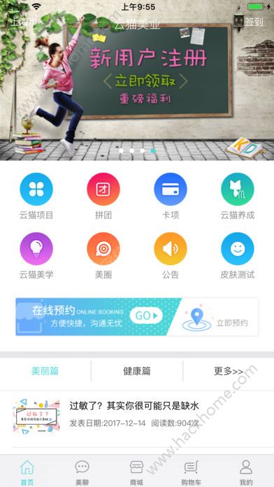 2、在线预约到店、上门服务、点评服务、消费查询、项目余额查询等服务,优惠福利、美丽