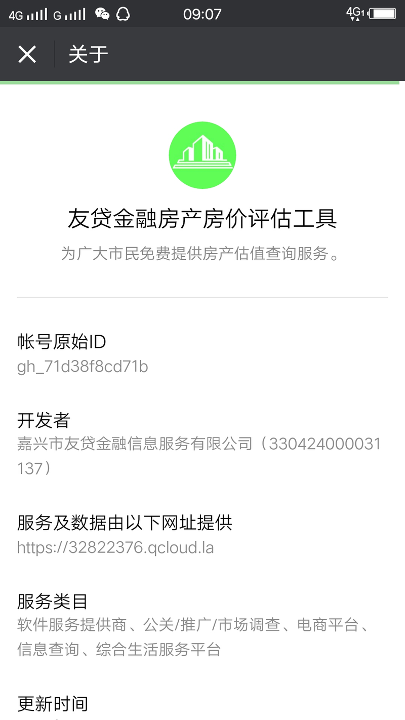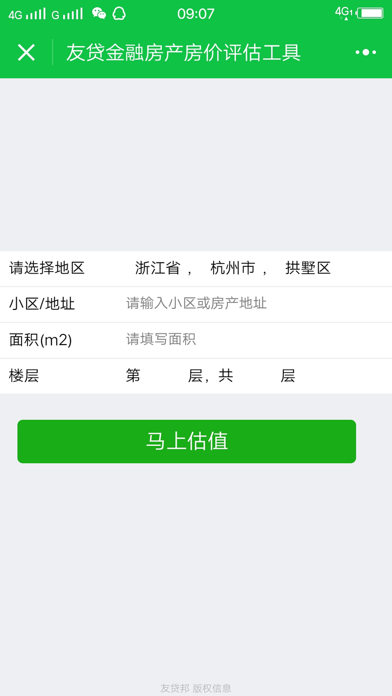 教程:打开微信 - 通讯录 - 公众号 - 右角 + 号 - 搜索 "友贷金融房产房价评估工具" - 进入使用