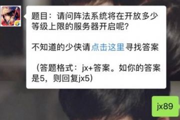 新剑侠情缘手游阵法系统什么时候上线?需要多少级开启?新剑侠情缘手游阵法系统作为全新的玩法,将在近日开启测试哦,下面就让嗨客小卷子来告诉大家阵法等级上限开启条件吧! 12月6日每日一题答案 Q:新剑侠情缘手游阵法系统将在多少等级上限开启?(答题格式:jx答案) A:jx89 2017-12-6482