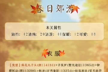 奇迹暖暖春日郊游2020想要高分通关获取更多道具奖励,那么这次准备的攻略可不能少哦,轻松搭配拿取奖励,下面嗨客小卷子带来详细内容,快来看看吧~ 奇迹暖暖春日郊游2020高分搭配 本关属性 简约:42 清纯:20 活泼:40 保暖:12 可爱:18 衣服 发型:麻花丸子头 (图|14181) > 子夜岁 (暂 2020-3-13576