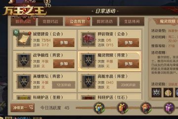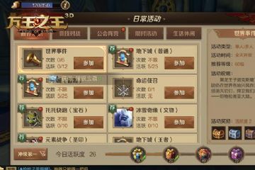万王之王3D世界事件既可以单人挑战也可以组队参加哦,每天最多参加6次,那么要如何玩该玩法呢,就让嗨客小卷子来告诉大家吧,希望大家能够喜欢哦~ 1、活动介绍 世界事件是全天都开放的一个活动,需要玩家等级达到60级以后才能参加。单人或是多人参加都可以,每天可以参加6次,每次可以获得2点活跃值。世界事件是需要玩家帮助解决发生在坦格拉美亚大陆上的各种事件,有些事件玩家 2018-9-10484